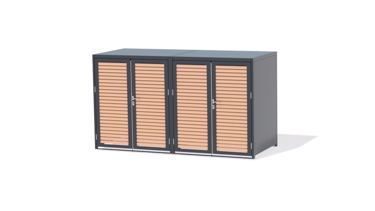 Unsere 2er Müllcontainerbox Original vereint zeitlos elegantes Design mit bester deutscher Fertigungsqualität, individuell gestaltbar, sicher verschließbar und nach DIN EN 1090 zertifiziert für maximale Langlebigkeit und Stil in jeder Umgebung.