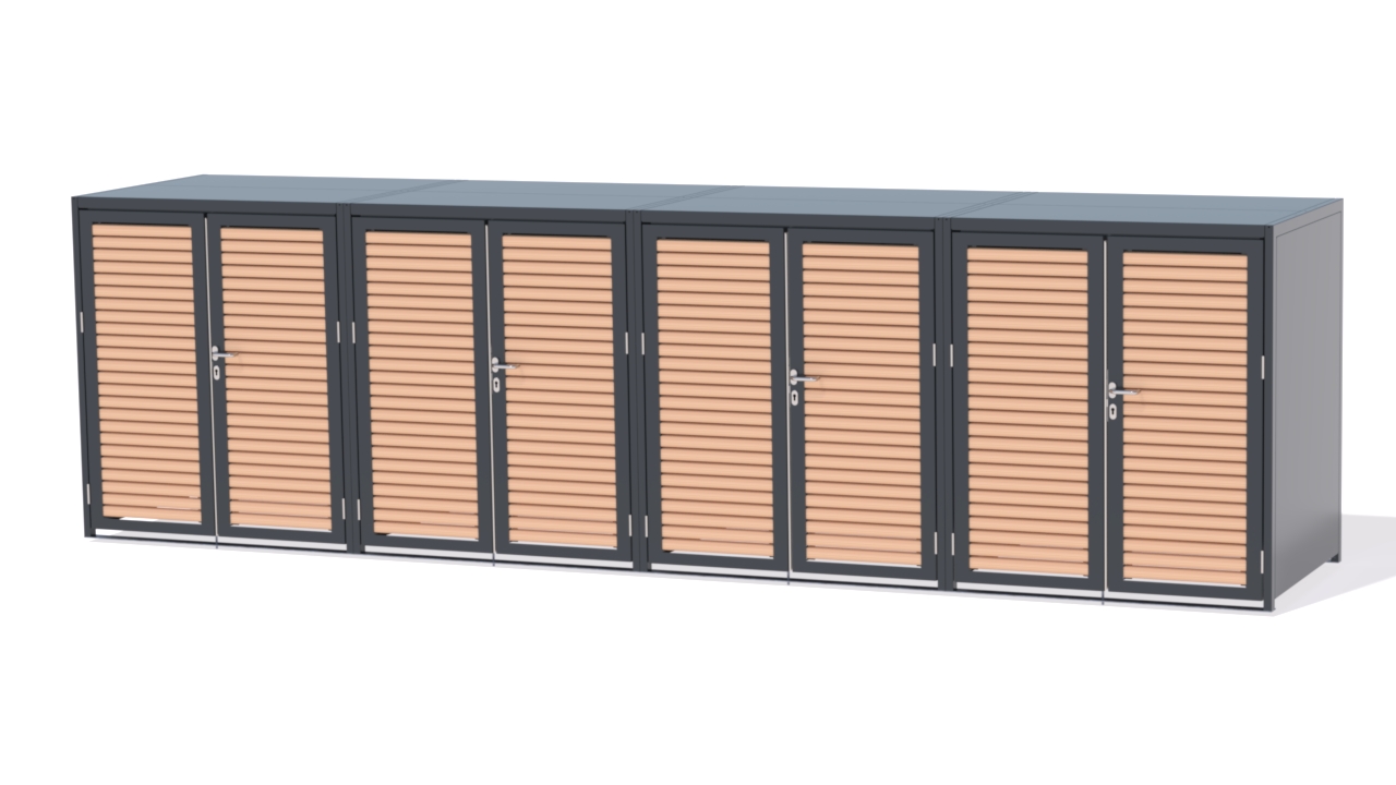 Unsere 4er Müllcontainerbox Original vereint zeitlos elegantes Design mit bester deutscher Fertigungsqualität, individuell gestaltbar, sicher verschließbar und nach DIN EN 1090 zertifiziert für maximale Langlebigkeit und Stil in jeder Umgebung.