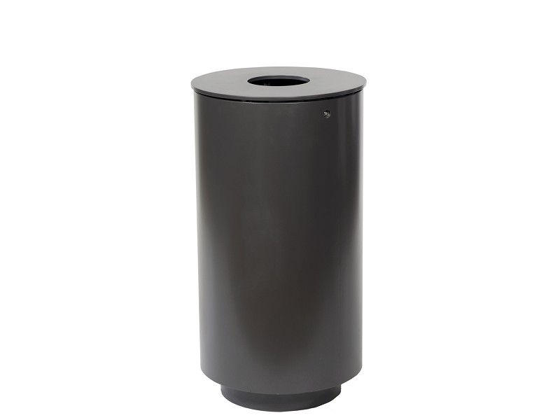 - Robuster, runder Stand-Abfallbehälter mit modernem Design, wahlweise mit oder ohne Aschereinsatz.