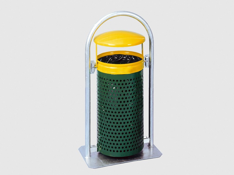 - Abfallbehälter im stabilen Rohrbogenständer mit zylinderförmigem, gelochtem Korpus