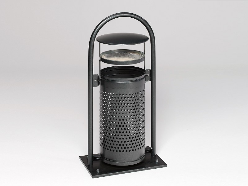 - Abfallbehälter im stabilen Rohrbogenständer mit zylinderförmigem, gelochtem Korpus