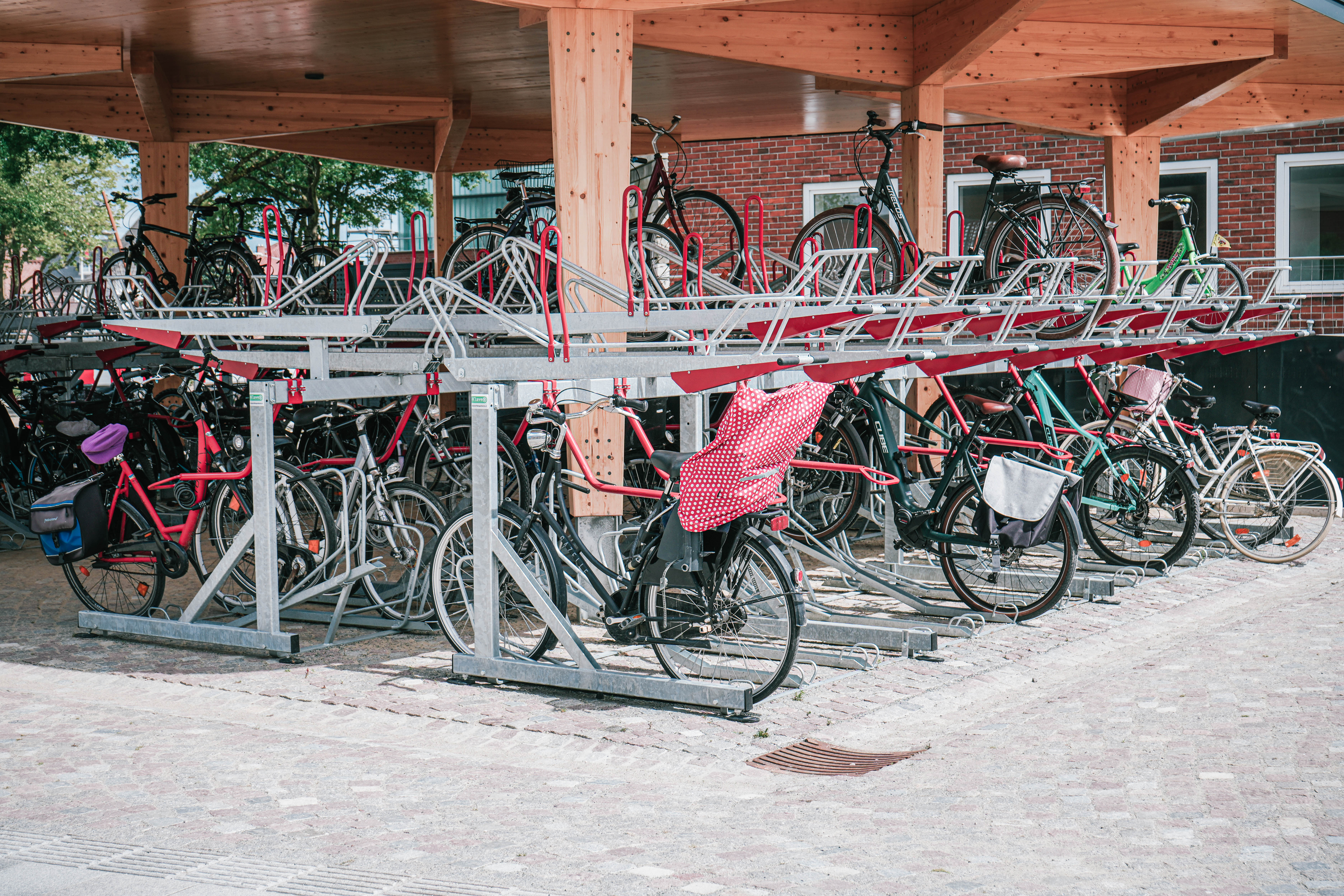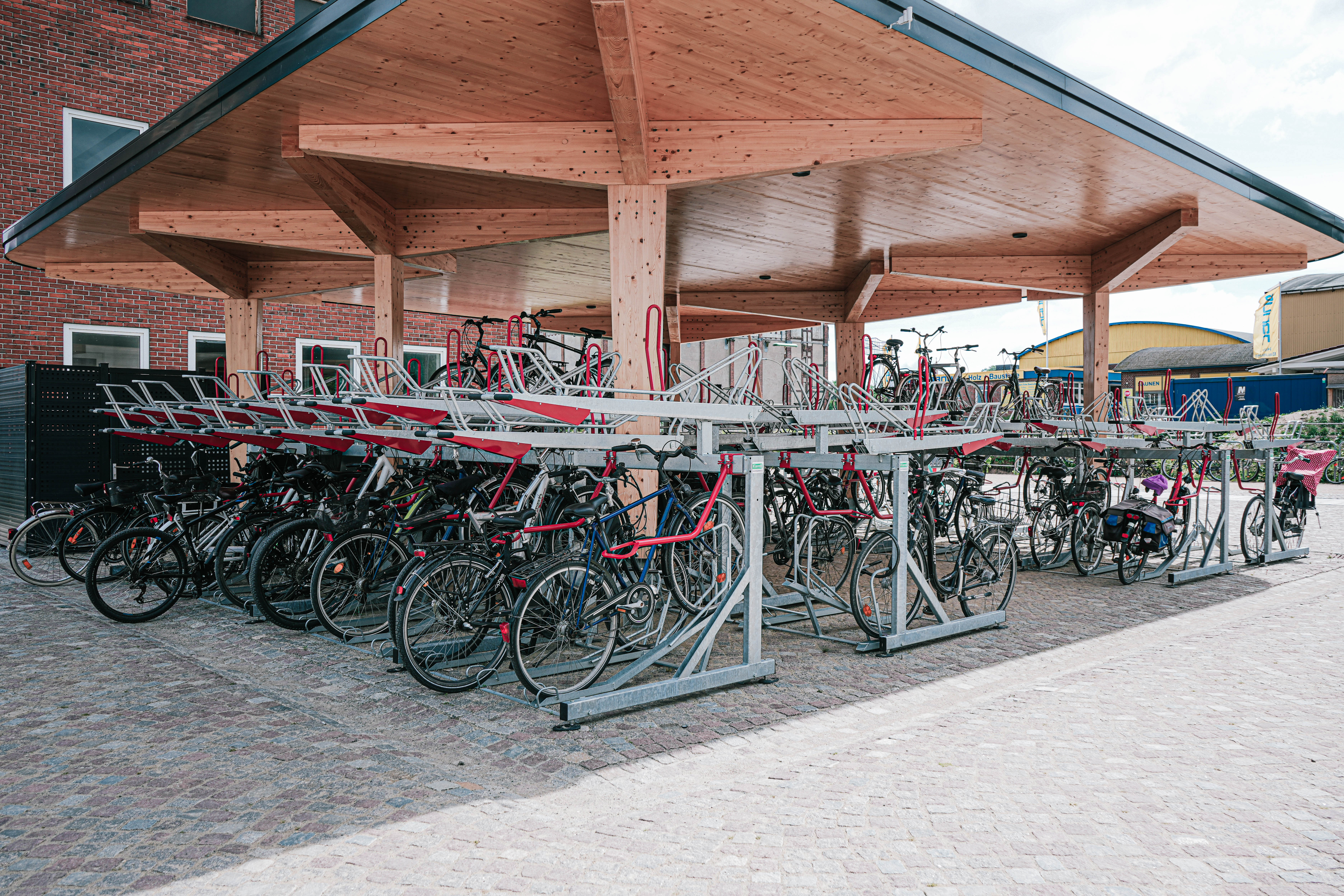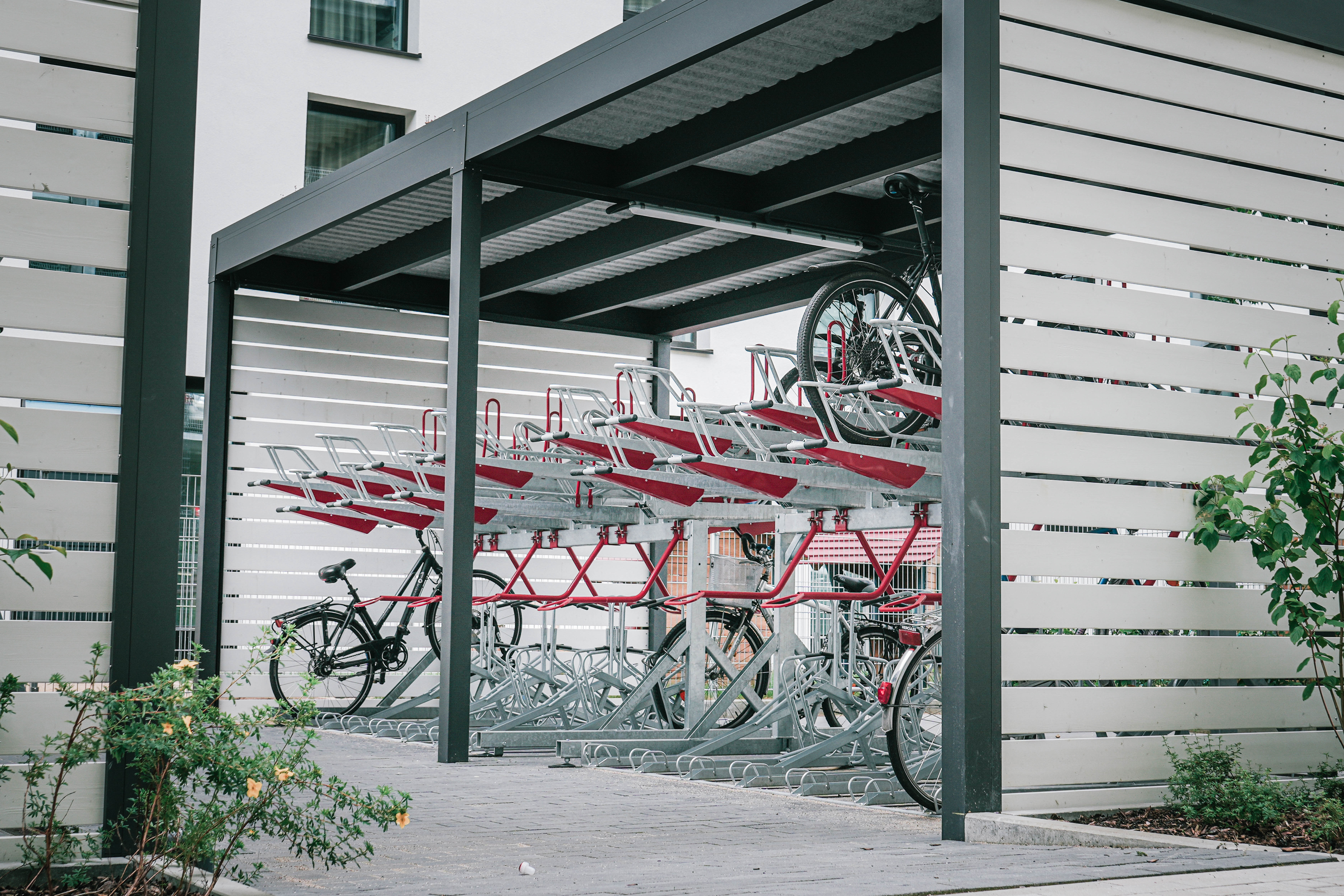 - Doppelstock-Fahrradparker mit 96 Einstellplätzen.