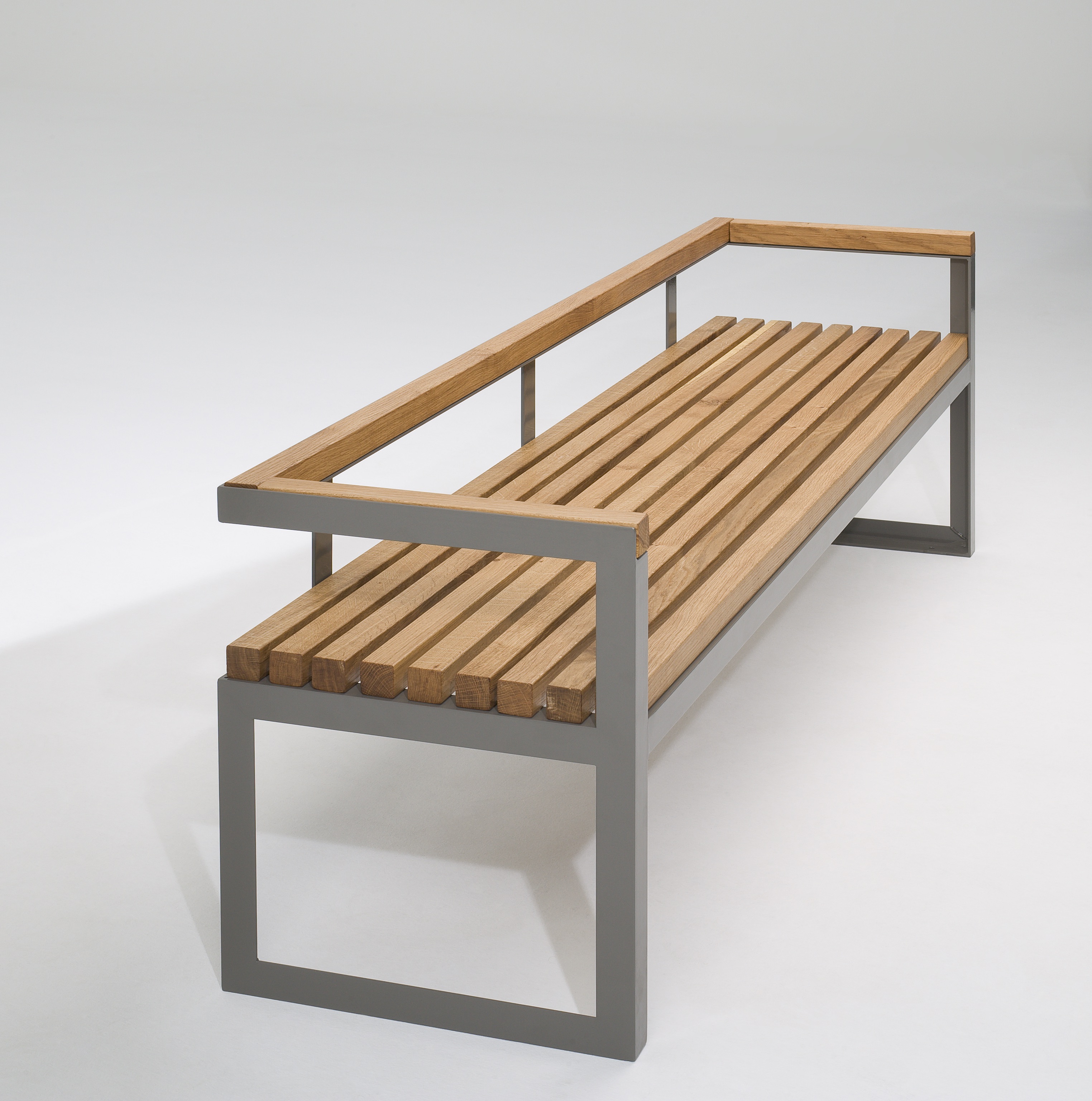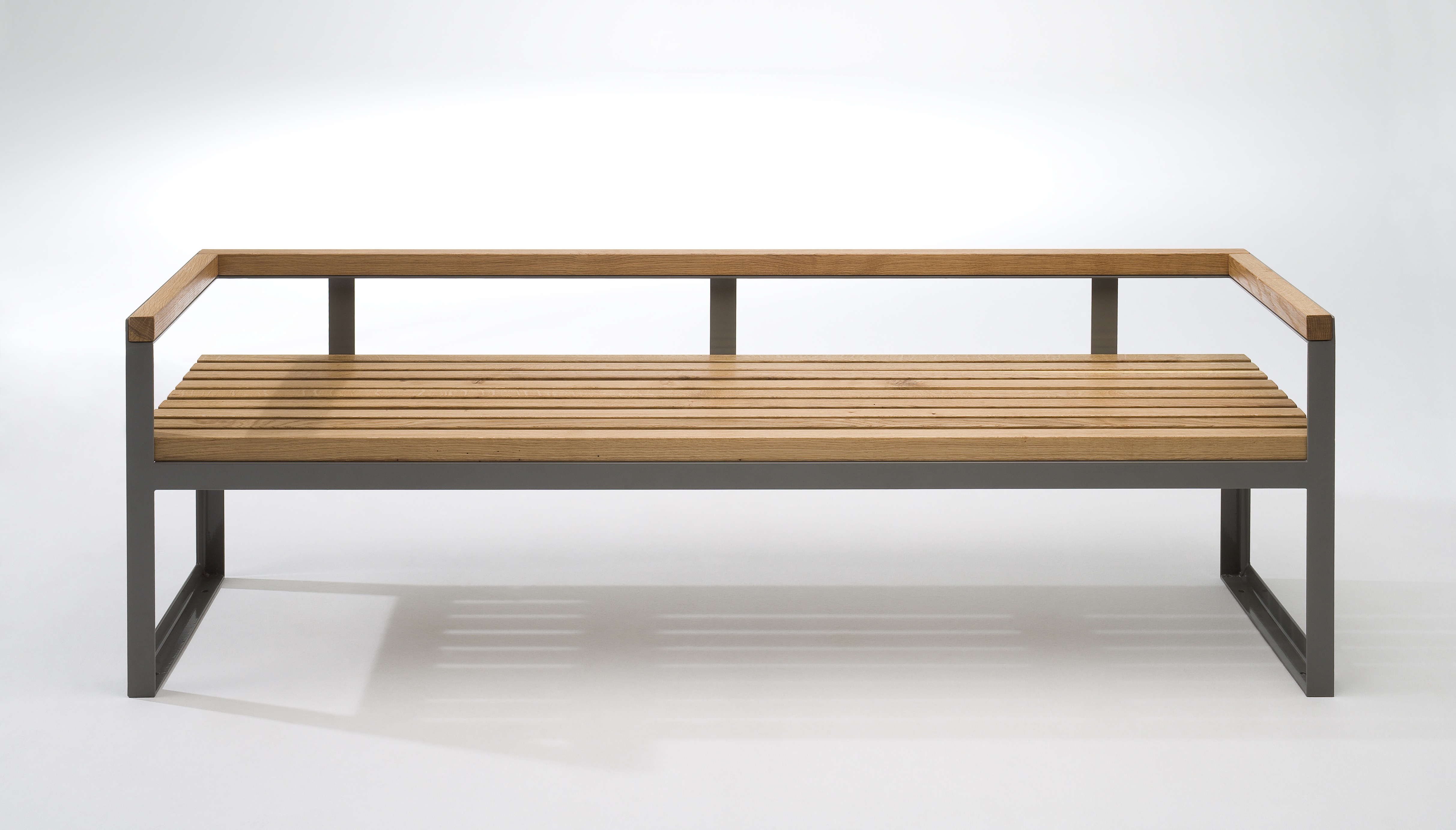 Die stabile Stahlkonstruktion ist robust, witterungsbeständig und auf intensive Nutzung ausgelegt. Die Sitzfläche aus hochwertigem Holz sorgt für angenehmen Komfort und verleiht der Bank eine natürliche, warme Ausstrahlung.