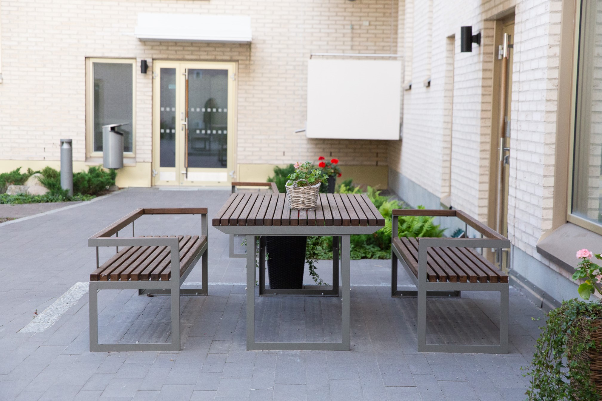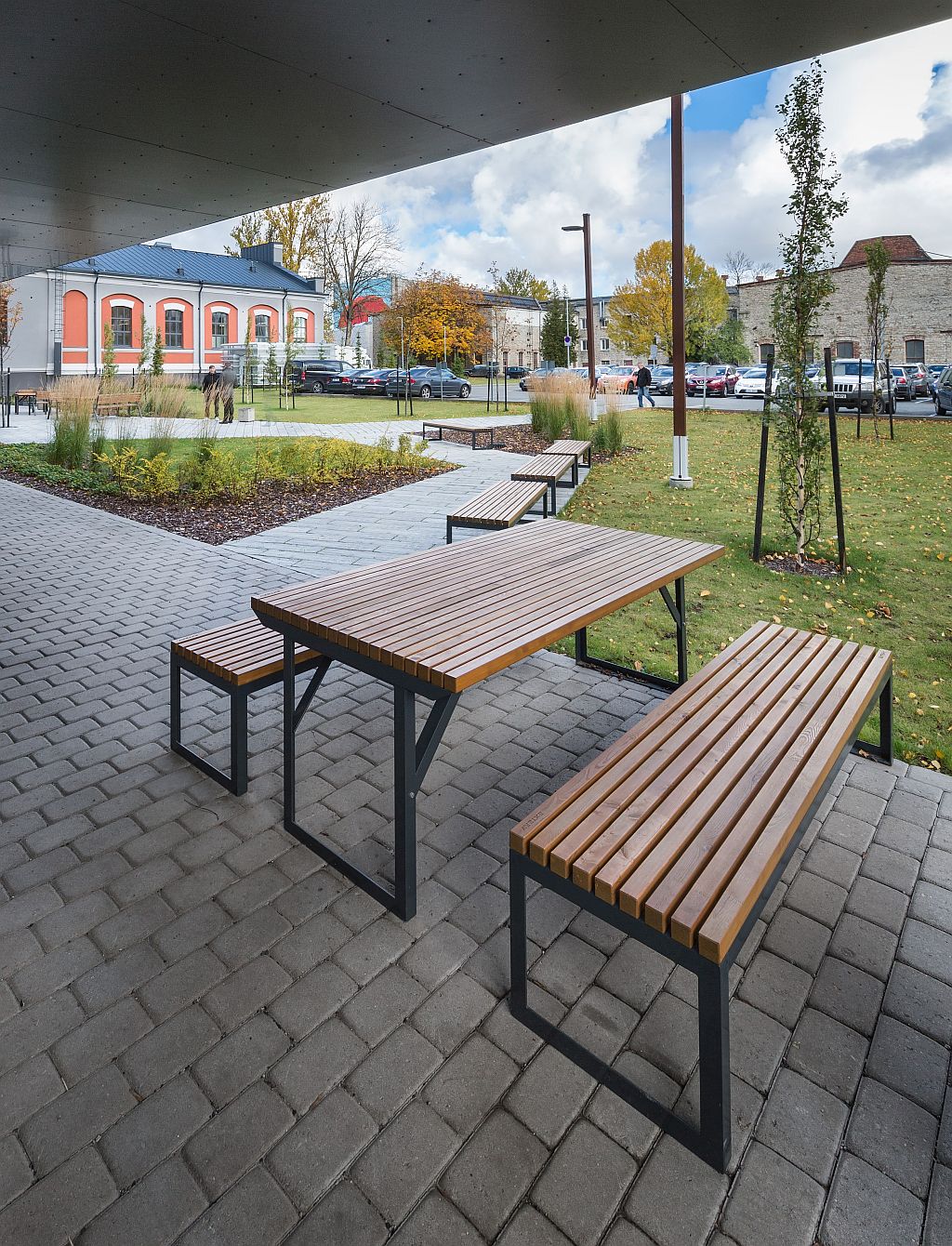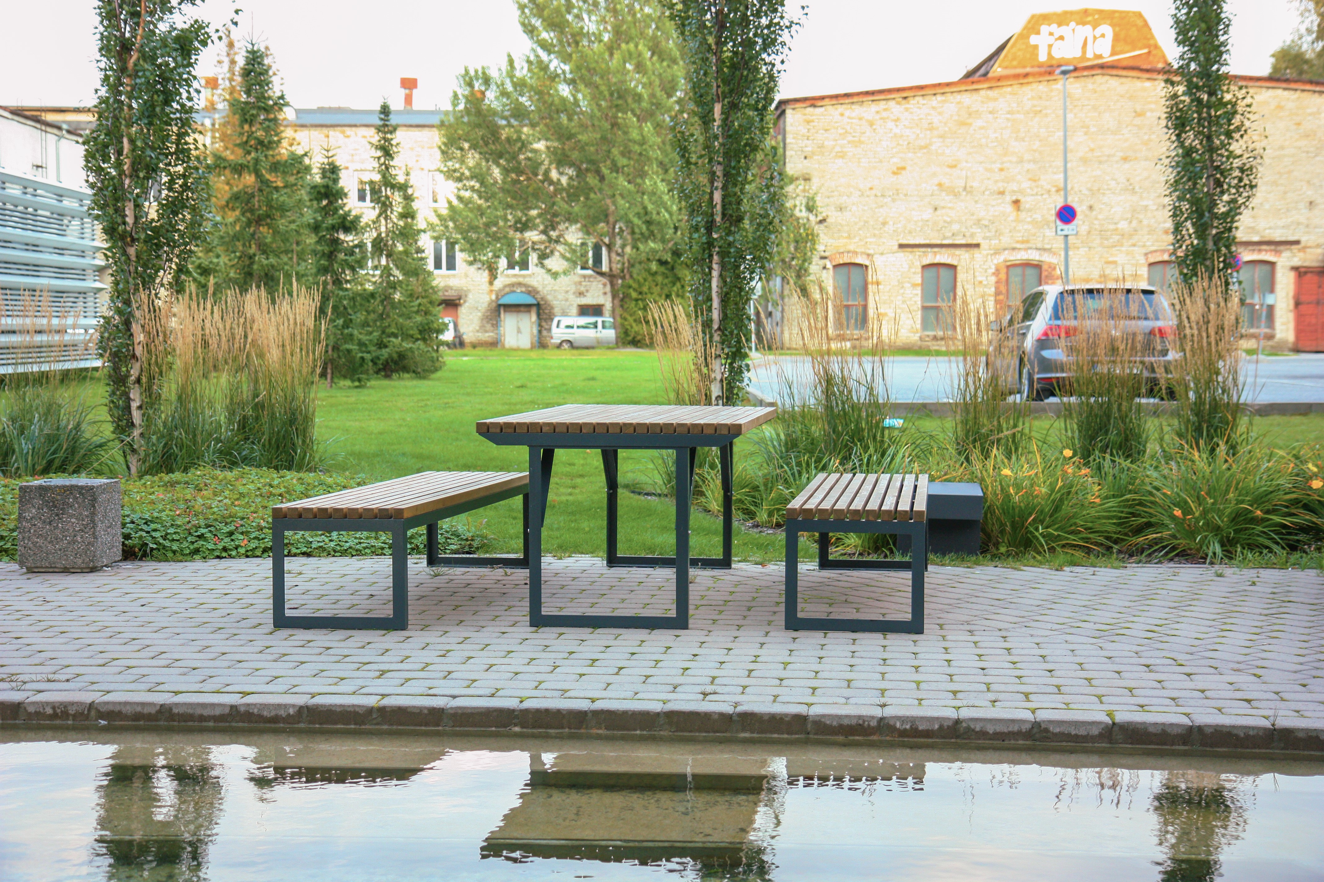 Der CLUB Tisch überzeugt durch seine klare, architektonische Formensprache und fügt sich harmonisch in urbane Aufenthaltsbereiche, Terrassen, Schulhöfe oder Campusflächen ein. Sein modernes Design schafft eine einladende Atmosphäre und macht ihn zum zentralen Treffpunkt für Kommunikation, Austausch und gemeinsames Arbeiten im Freien.