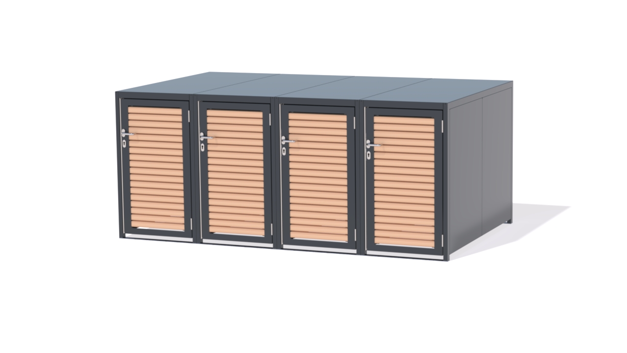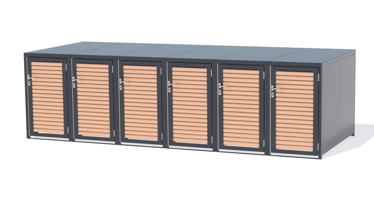 Modular aufgebaut, passen sie sich flexibel jeder Platzsituation an, ideal für privaten Hof, Vorgarten oder größere Wohnanlagen. Durch abschließbare Türen sind die Boxen sicher gegen Diebstahl, Vandalismus und Witterung. Hochkomfortabel wird die Nutzung durch leichtgängige Türen.