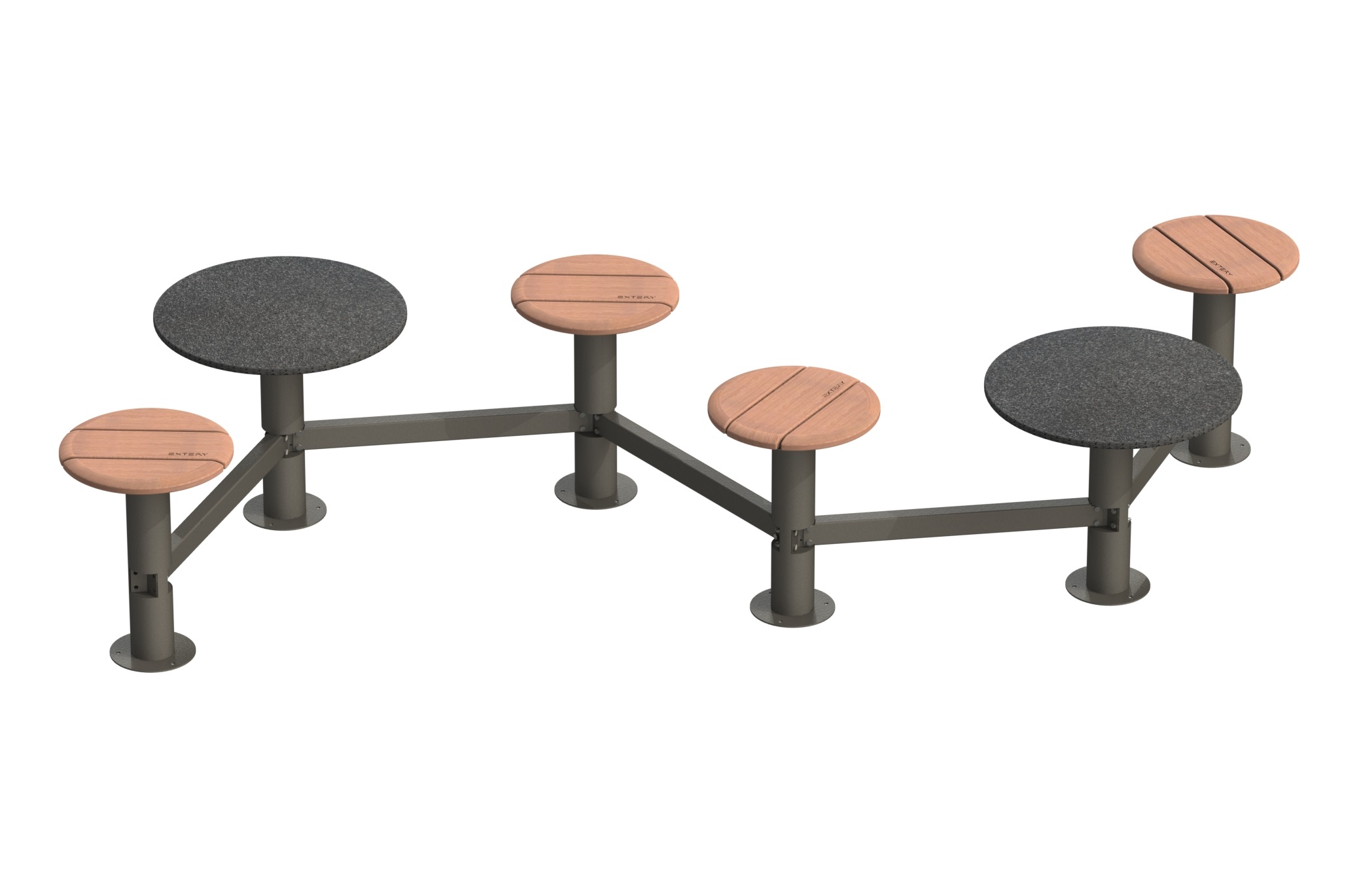 Maße: Ø: 400 mm / H: 534 mm. - Tisch-Modul, Grundkonstruktion feuerverzinkt nach ISO 1461:2009 Standard, Tischauflage