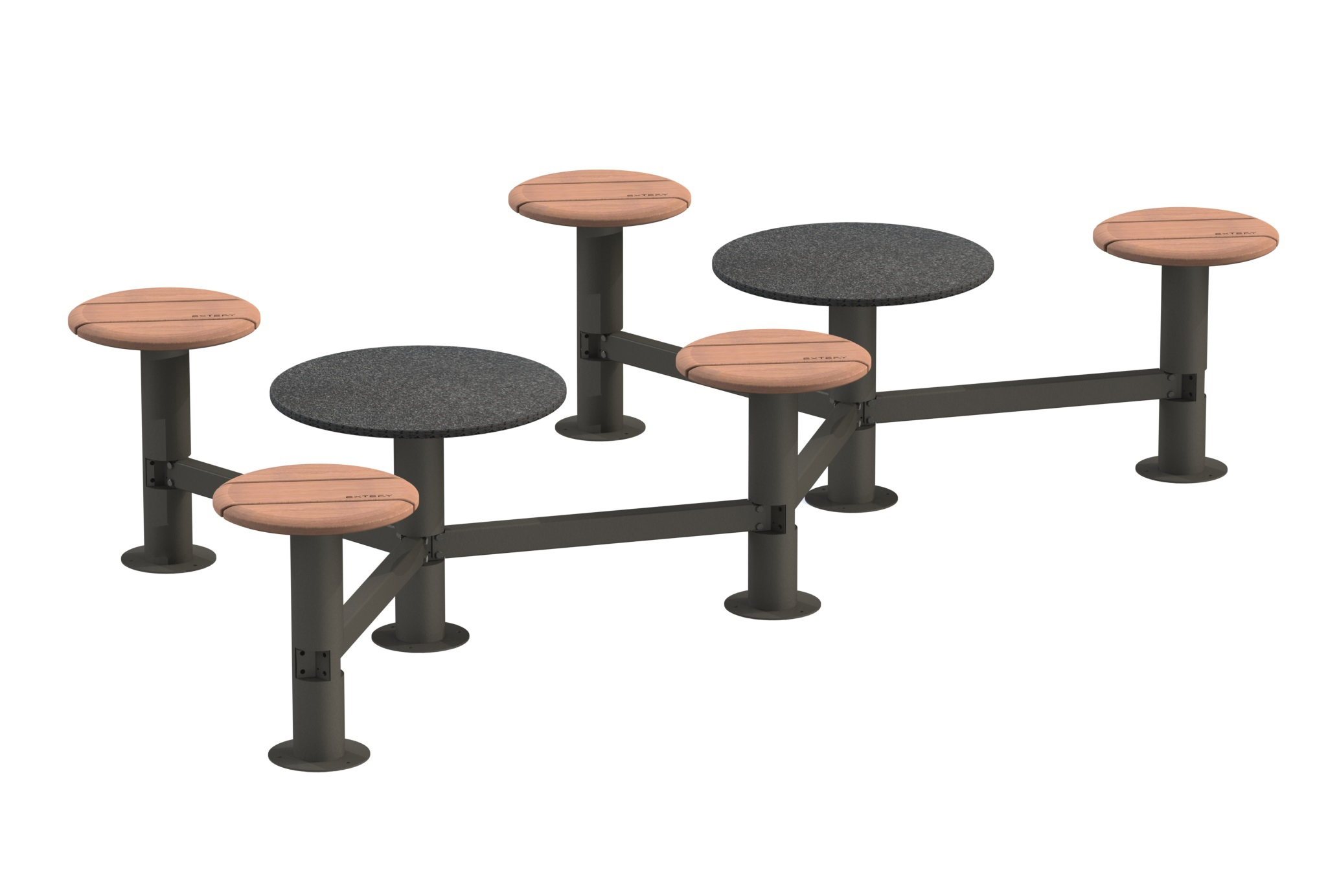 Maße: Ø: 400 mm / H: 534 mm. - Tisch-Modul, Grundkonstruktion feuerverzinkt nach ISO 1461:2009 Standard, Tischauflage