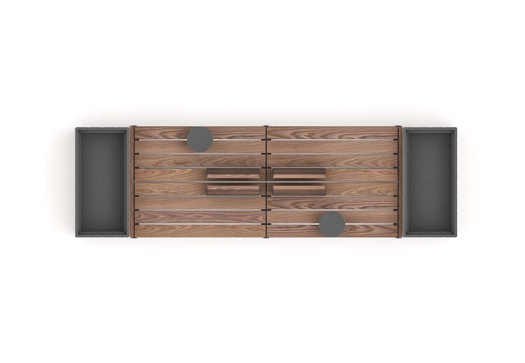 - Modulares Parkbanksystem mit integrierbarem Pflanzenbehälter