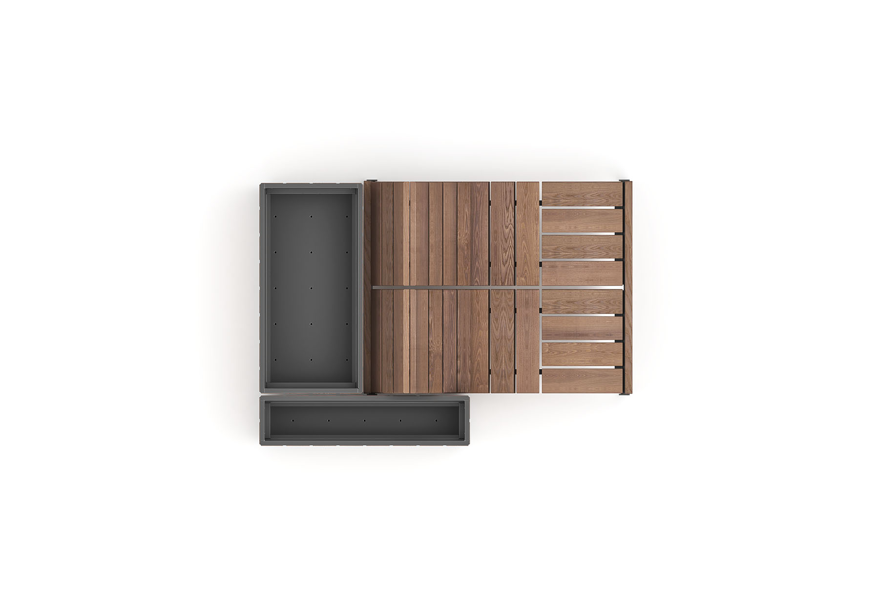 - Modulares Parkbanksystem mit integrierbaren Pflanzenbehältern