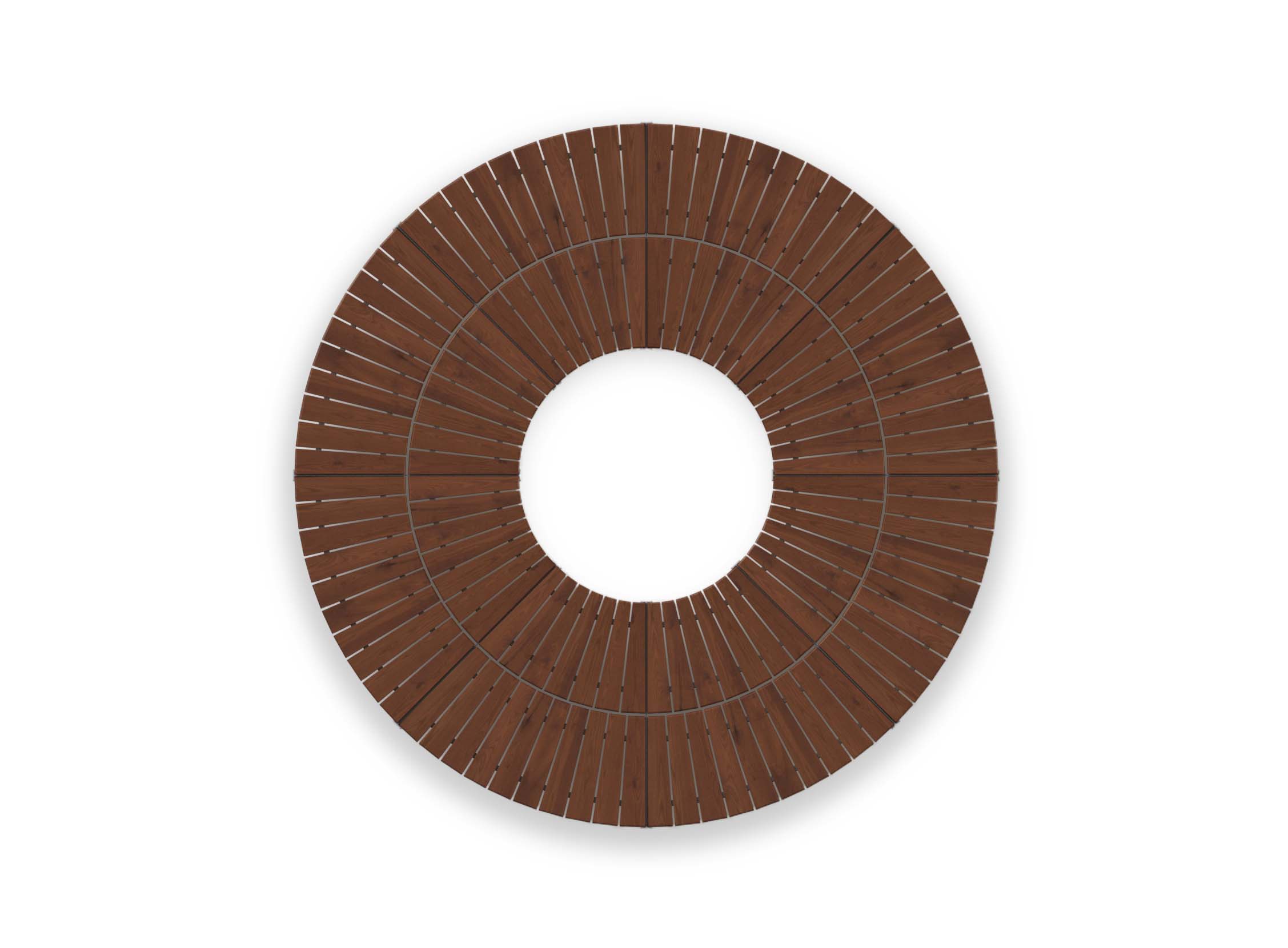 Das JADA Bankset 33 bildet eine markante, kreisförmige Sitzlandschaft mit zwei konzentrischen Sitzringen. Eine robuste Lösung, die zentrale Treffpunkte schafft und kommunikative Aufenthaltsbereiche gestaltet.