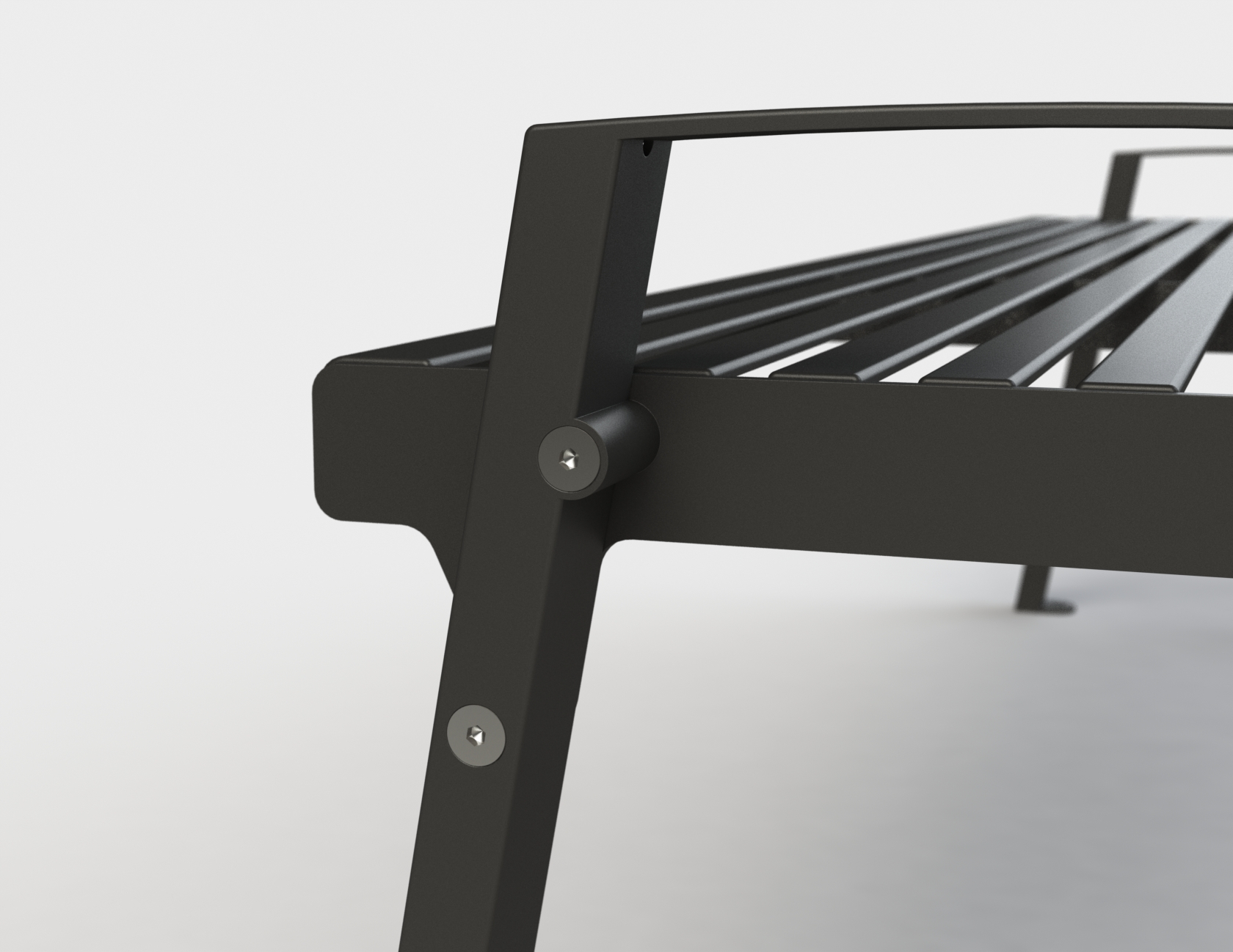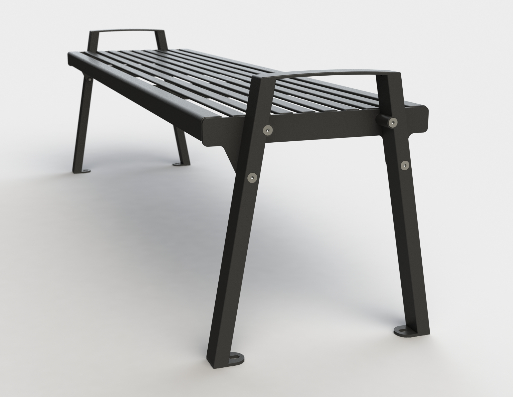 Die Konstruktion besteht vollständig aus Stahl und verbindet eine stabile Unterkonstruktion mit einer robusten Sitzfläche. Alle Stahlteile sind verzinkt und pulverbeschichtet, wodurch ein hoher Korrosionsschutz sowie eine langlebige Widerstandsfähigkeit gegenüber Witterungseinflüssen und intensiver Nutzung im Außenbereich gewährleistet werden.