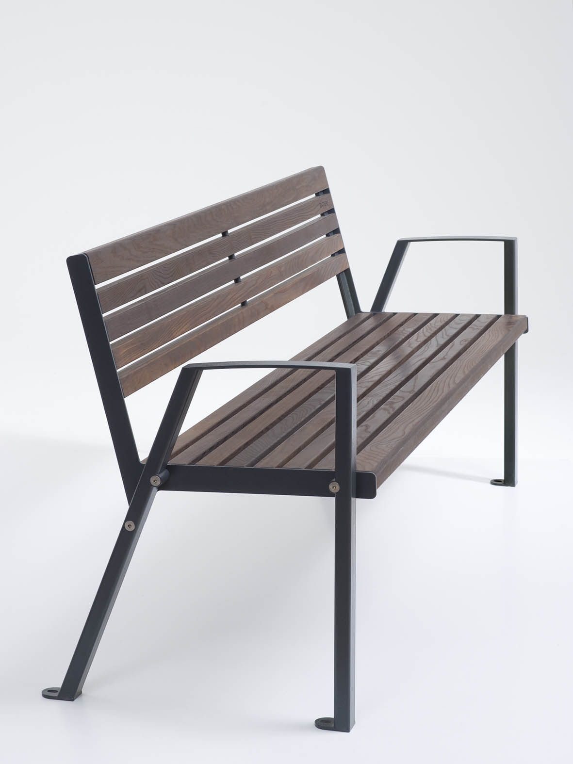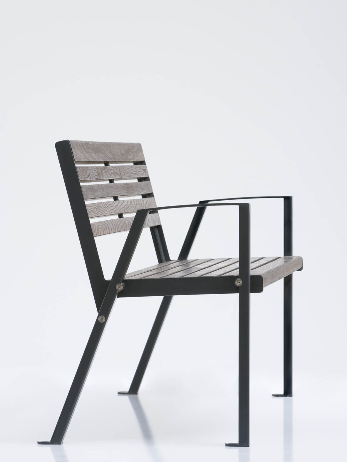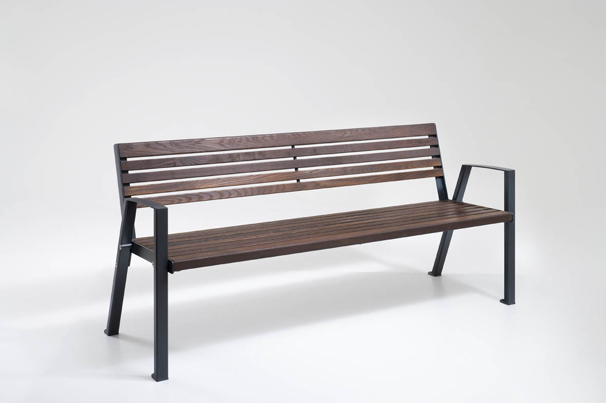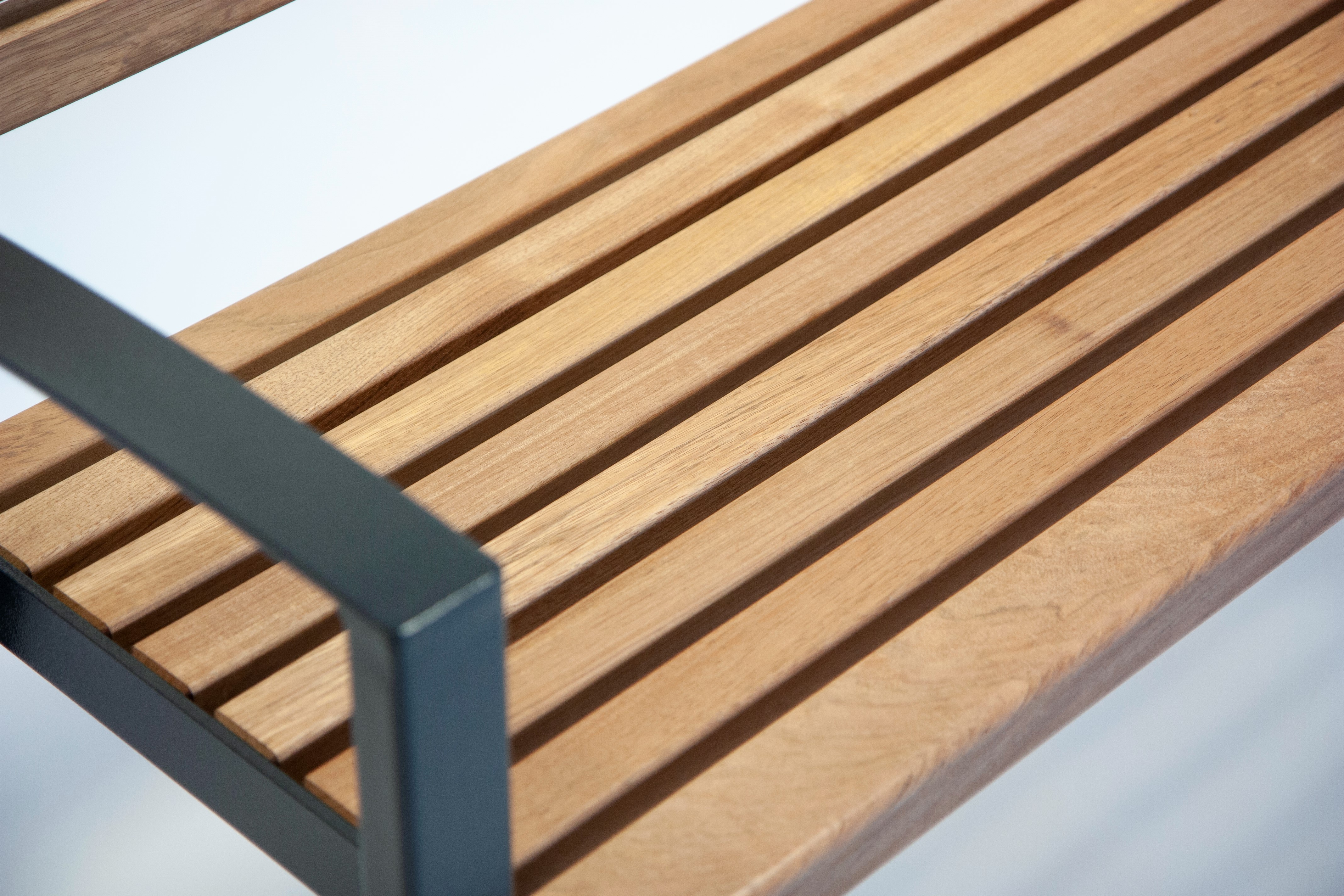 Die Konstruktion kombiniert eine stabile Stahlunterkonstruktion mit einer hochwertigen Sitz- und Rückenfläche aus Holz. Das Gestell ist verzinkt und pulverbeschichtet und bietet dadurch einen zuverlässigen Korrosionsschutz sowie eine hohe Widerstandsfähigkeit gegenüber Witterungseinflüssen und intensiver Nutzung im Außenbereich.