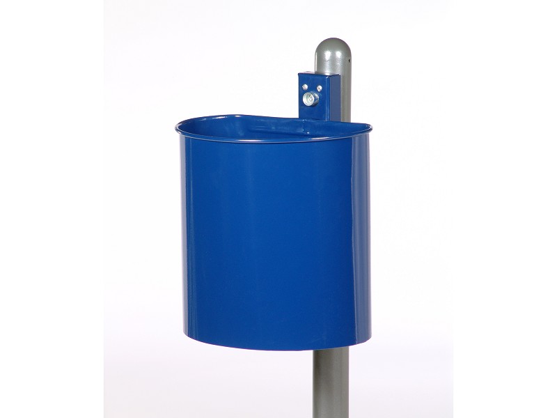 - Halbrunder Abfallbehälter mit klassischem, kompaktem Design für Wand- oder Pfostenmontage.