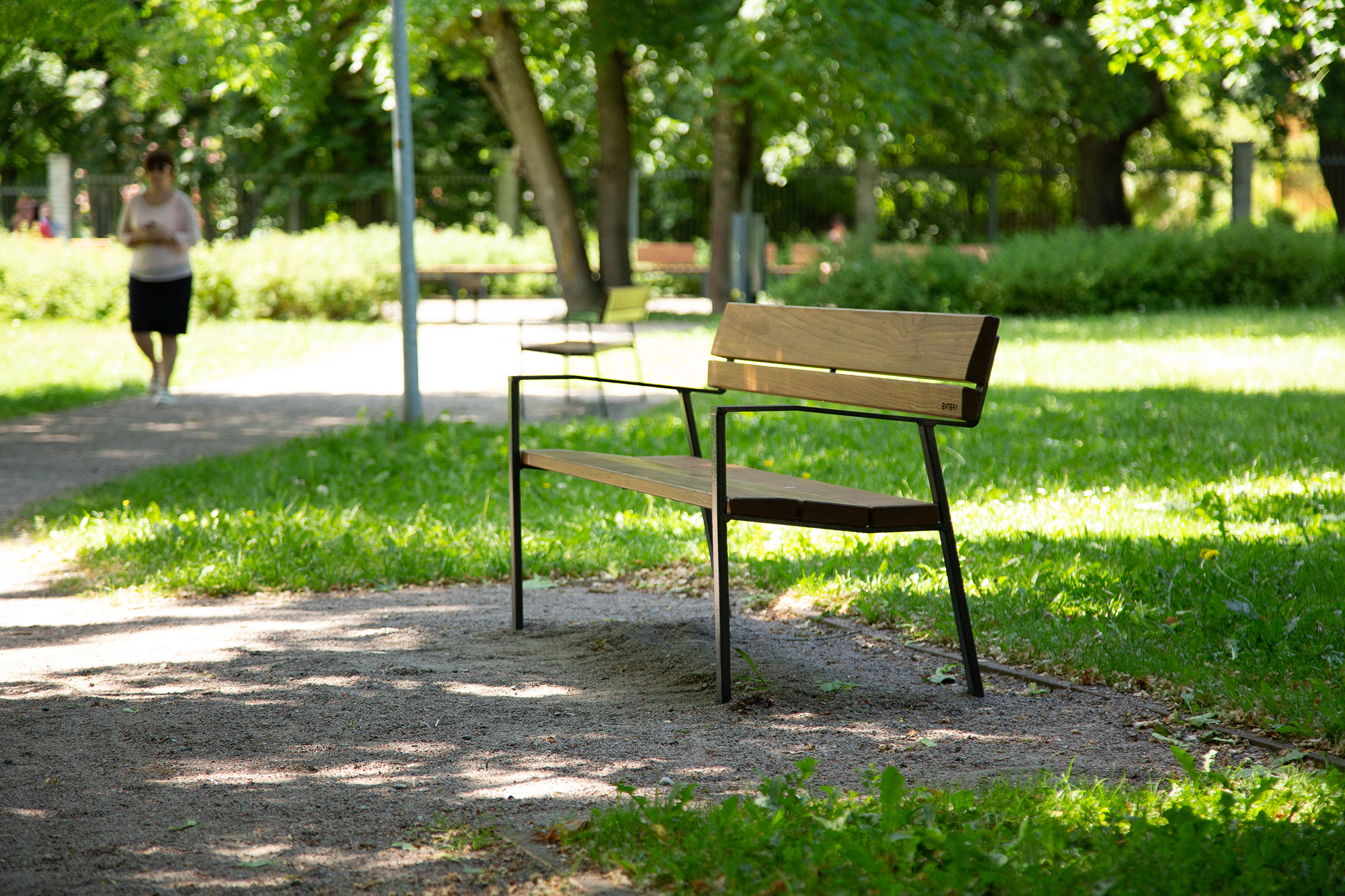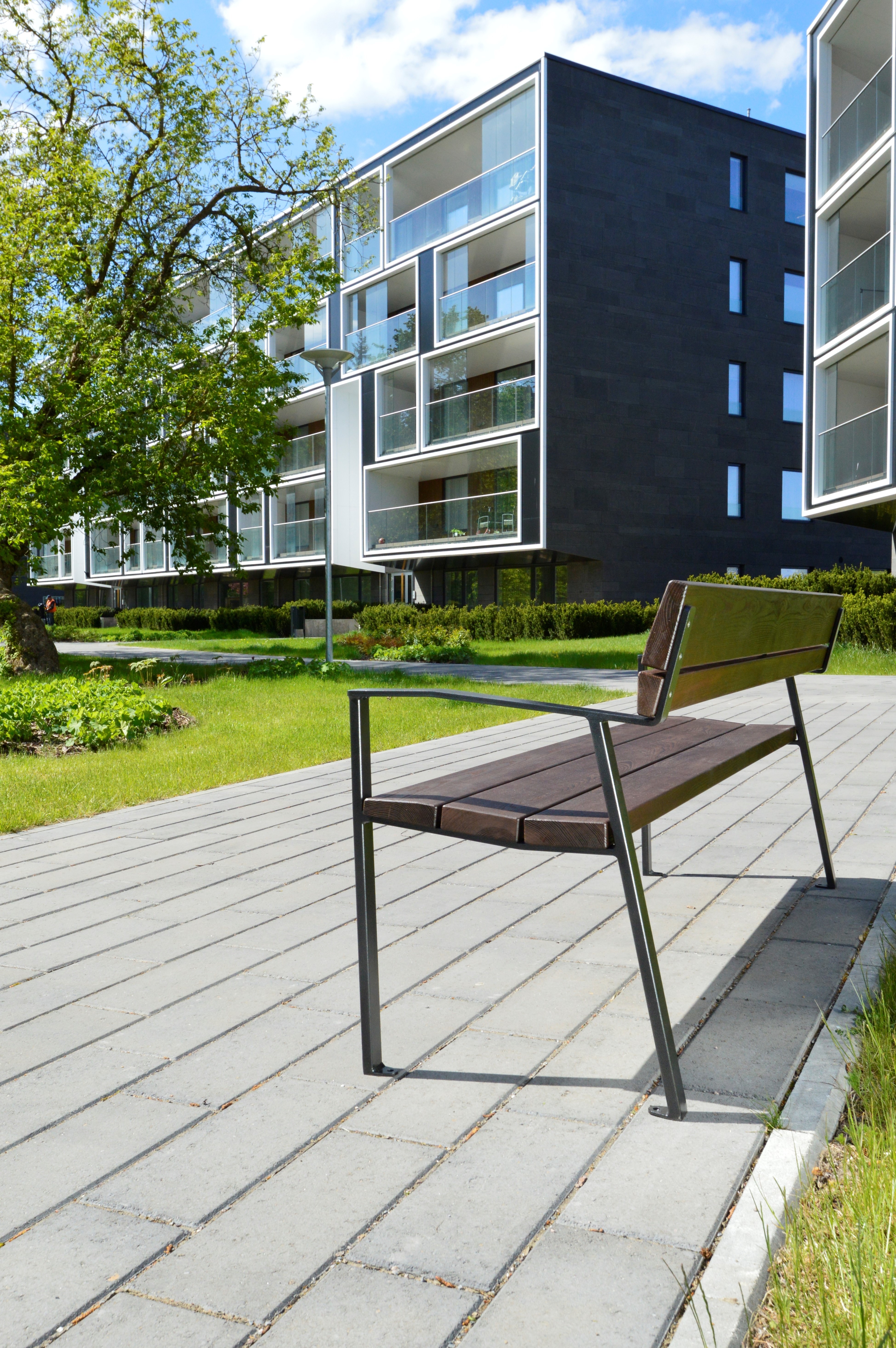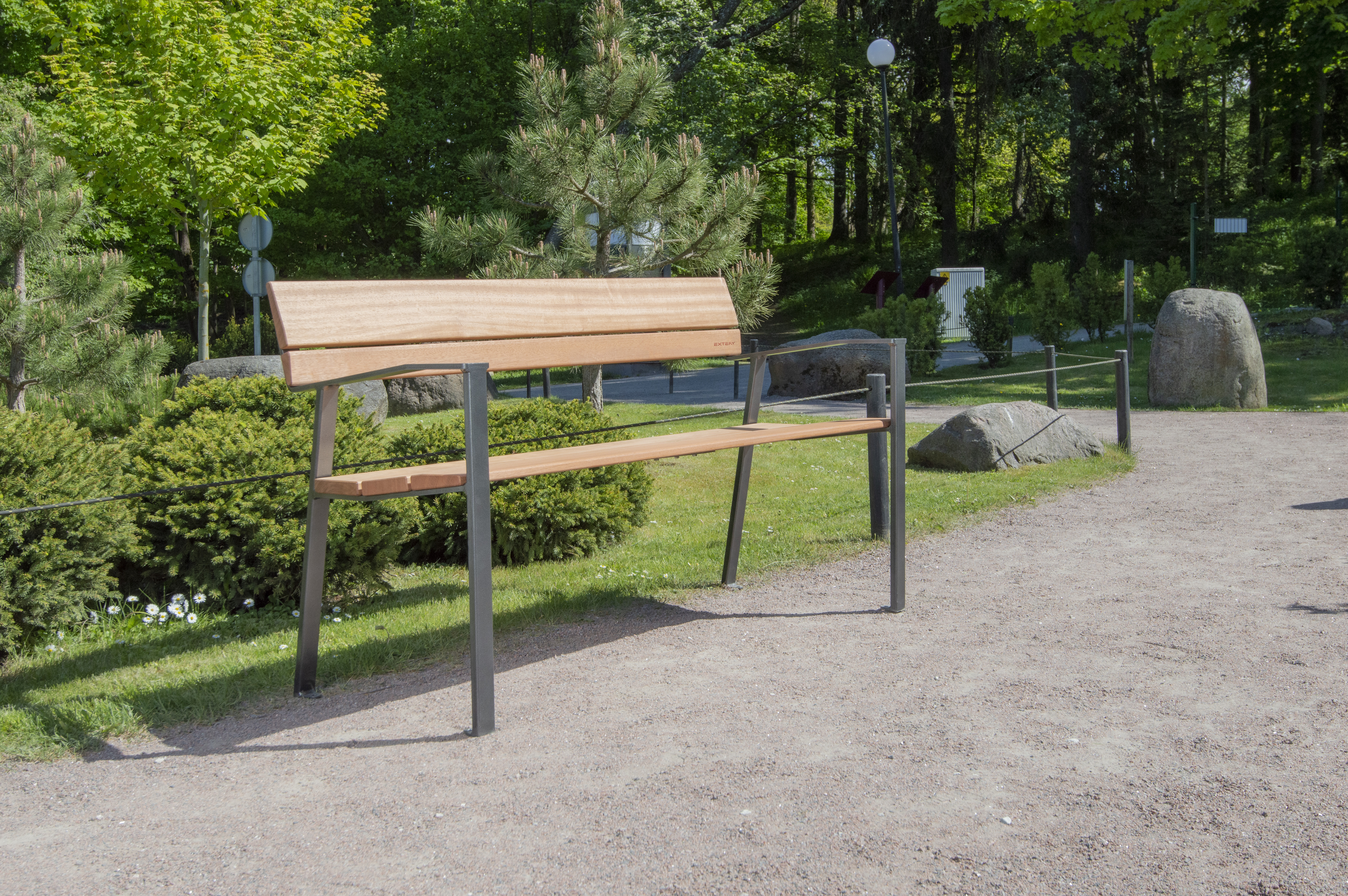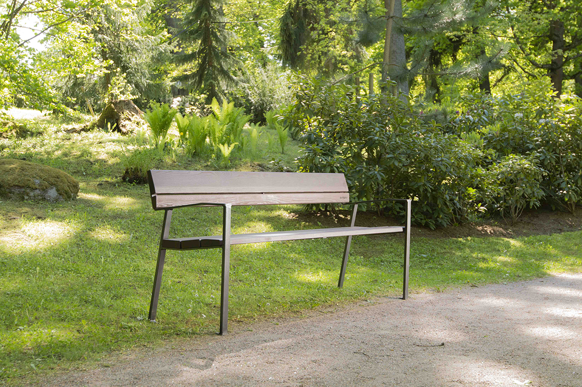 Die Konstruktion ist konsequent auf Dauerhaftigkeit ausgelegt. Hochwertige, wetterbeständige Materialien gewährleisten Stabilität und Widerstandsfähigkeit im ganzjährigen Einsatz. Die Sitzfläche ist komfortabel dimensioniert und unterstützt eine angenehme, natürliche Sitzhaltung, geeignet für öffentliche Bereiche mit hoher Frequentierung ebenso wie für hochwertige halböffentliche Anlagen.