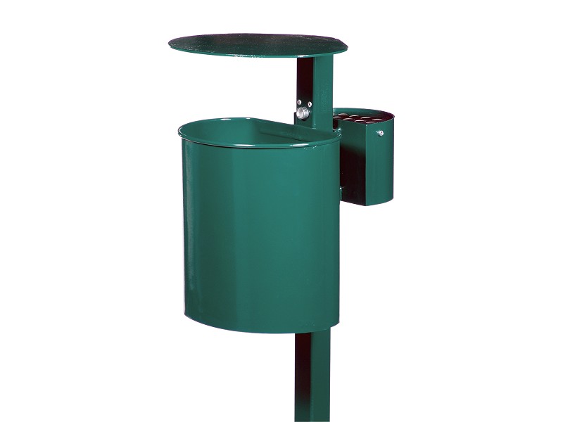 - Halbrunder Abfallbehälter mit integriertem Ascher und Wetterschutzdach, ideal für öffentliche Plätze, Eingangsbereiche und Parkanlagen.