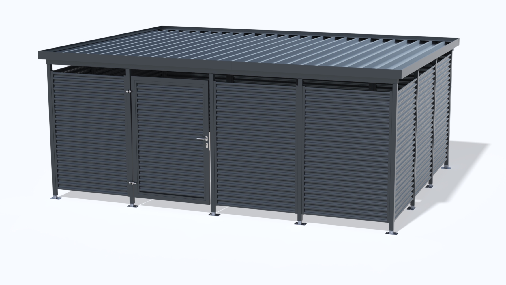 Das MultiFlex Müllcontainerhaus Gr. 4.3 mit korrosionsgeschütztem Stahlkorpus verbinden modernes Design mit hoher Funktionalität und langlebiger Materialqualität. Entwickelt mit Blick auf Nachhaltigkeit, robust, pflegeleicht und ideal für den dauerhaften Einsatz im Außenbereich.