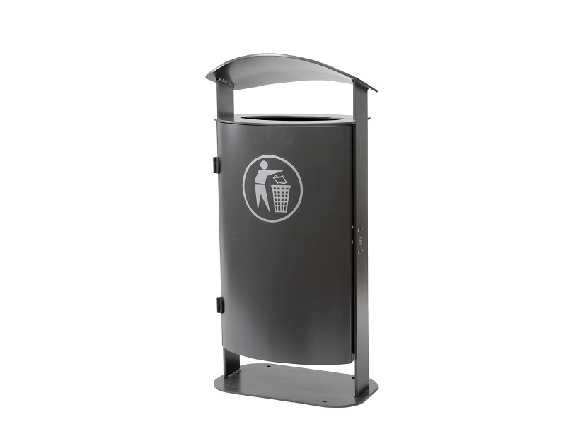 - Vandalismushemmender Stand-Abfallbehälter mit robuster, abgeschrägter oder gewölbter Abdeckung.