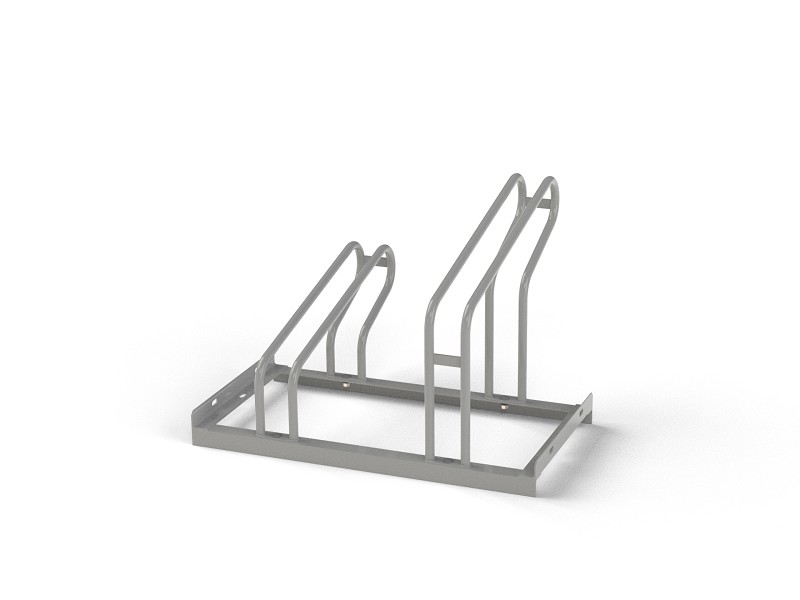 - Fahrradparker, wahlweise einseitig (2–6 Stellplätze) oder zweiseitig (4–12 Stellplätze) mit Abwechselnde Hoch-/Tiefstellung.