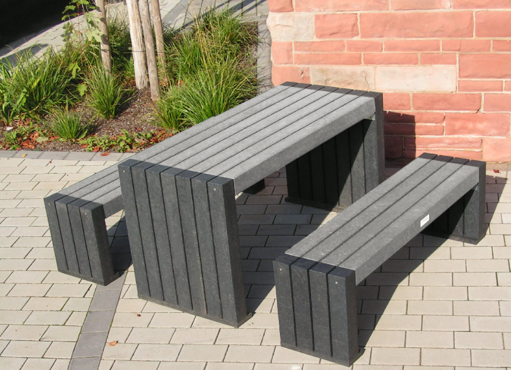 Die ORBE Hockerbank, schlicht, robust und wetterfest, die pflegeleichte Sitzlösung aus Kunststoff in braun oder grau für harmonische Außenbereiche.