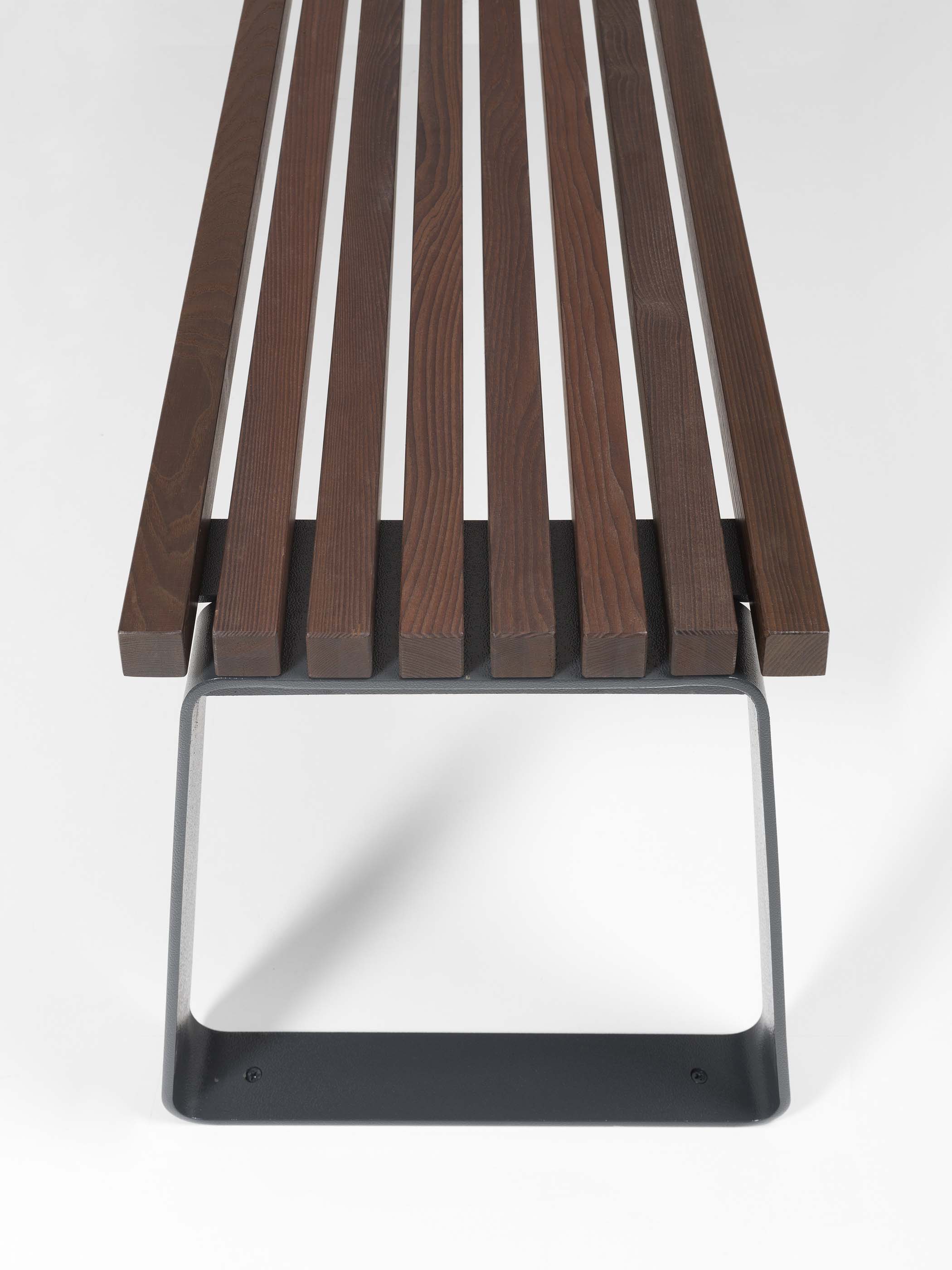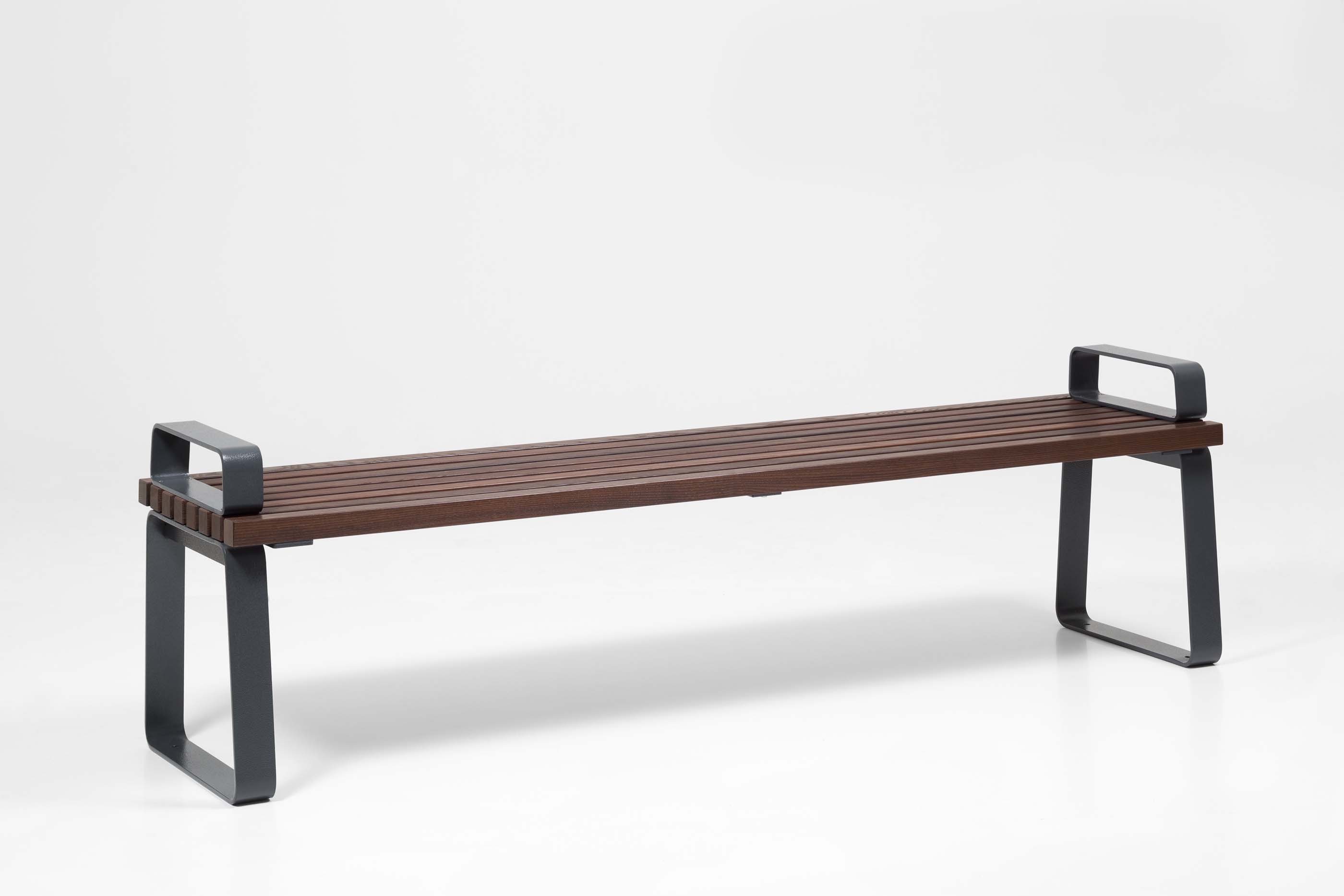 Durch die offene Ausführung ist die Bank von beiden Seiten zugänglich und lässt sich vielseitig einsetzen, ob in linearen Anordnungen entlang von Wegen oder als Teil größerer Sitzkonzepte auf Plätzen und Campusflächen. Sie unterstützt spontane Aufenthalte ebenso wie kurze Wartezeiten.