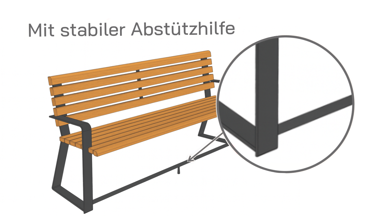 Diese Sitzbank überzeugt durch ihr modernes Erscheinungsbild und liebevoll ausgearbeitete Details. Sie wurde speziell für die Bedürfnisse älterer Menschen konzipiert und vereint Komfort mit funktionalem Design.