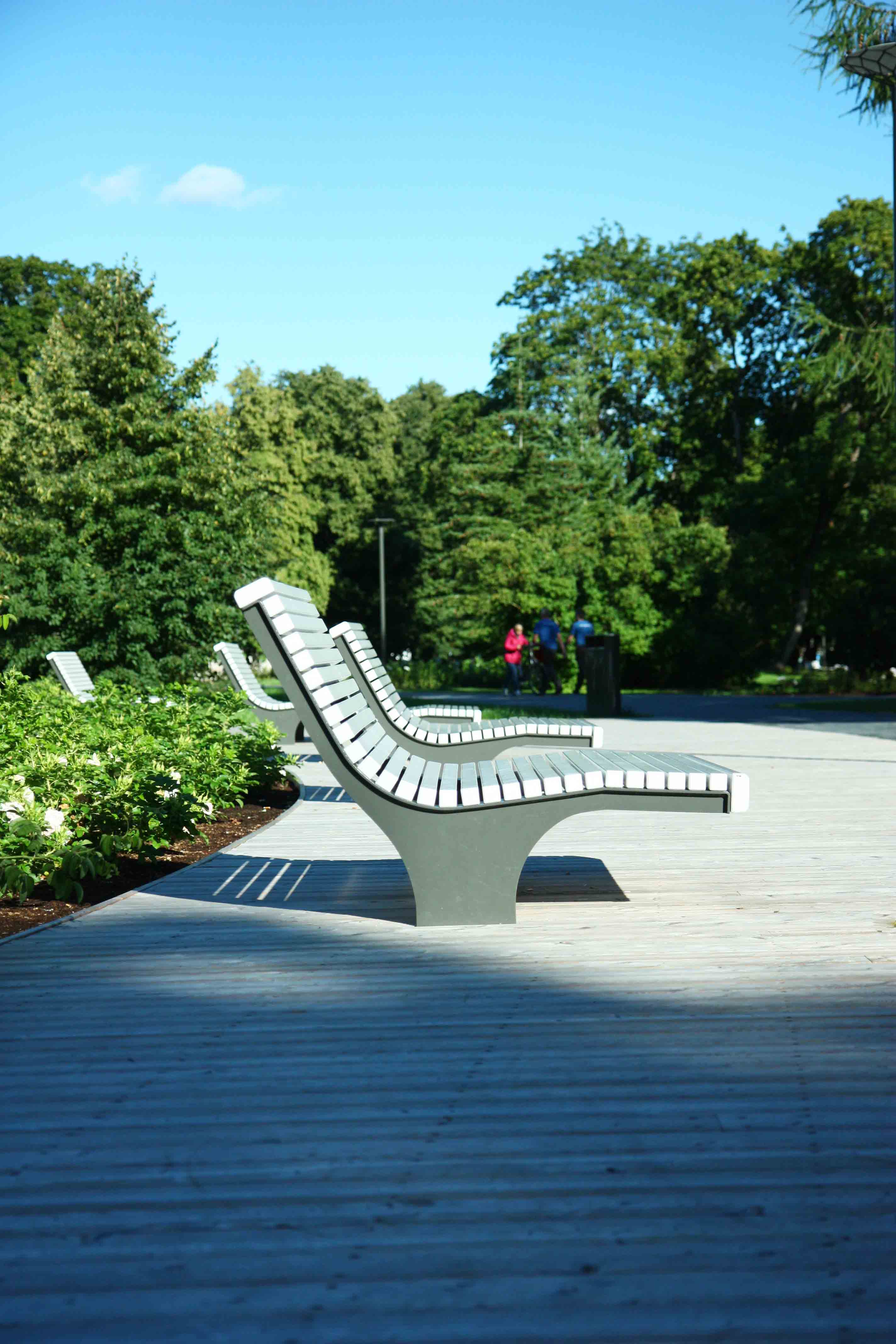 Der VOOG Liegebank verbindet gestalterische Leichtigkeit mit nachhaltiger Robustheit und ist damit perfekt für zeitgemäße urbane Aufenthaltsorte geeignet.