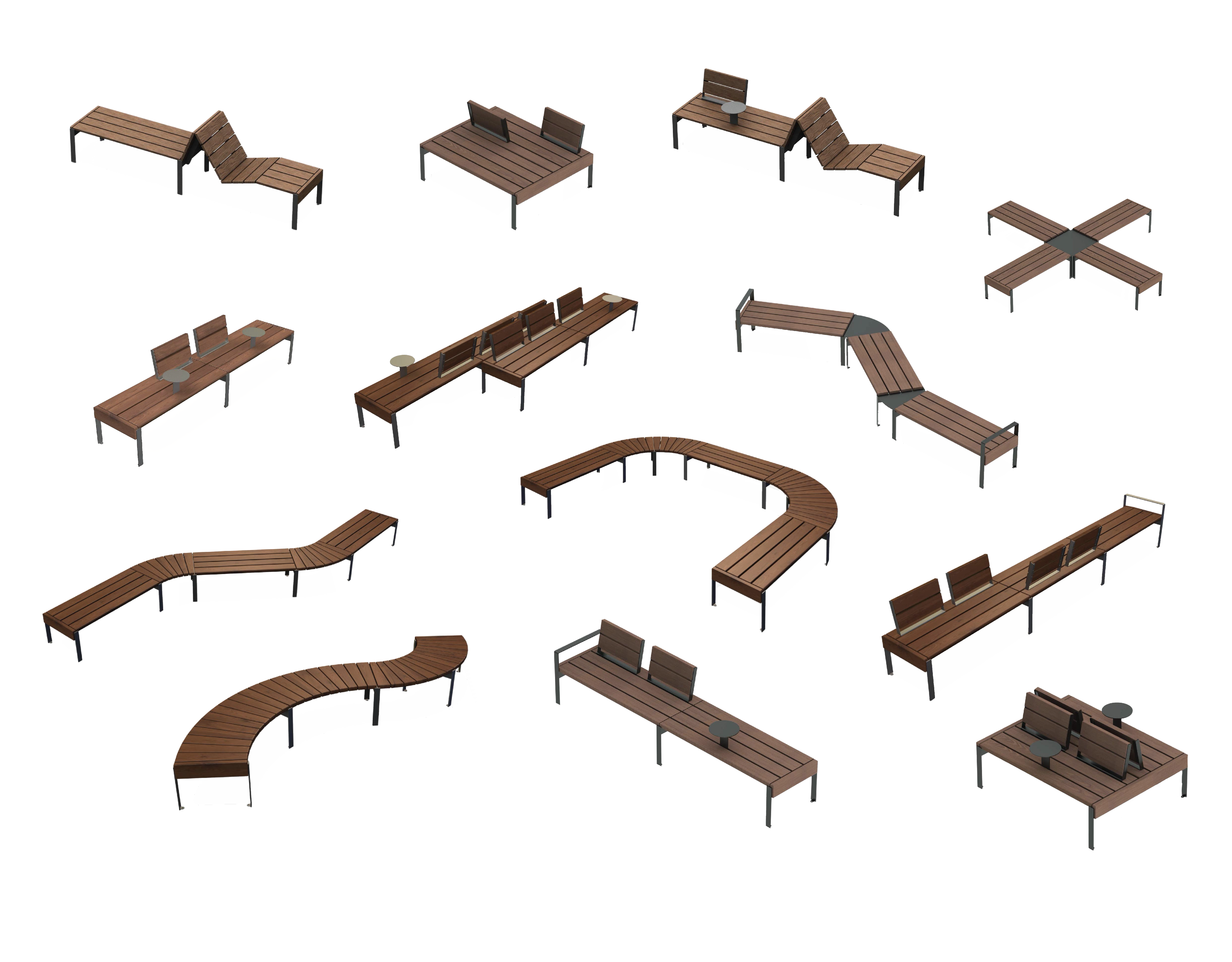 So entstehen aus einzelnen Elementen durchdachte Sitzlandschaften, die Aufenthaltsqualität schaffen, öffentliche Räume strukturieren und Orte zu echten Treffpunkten machen.