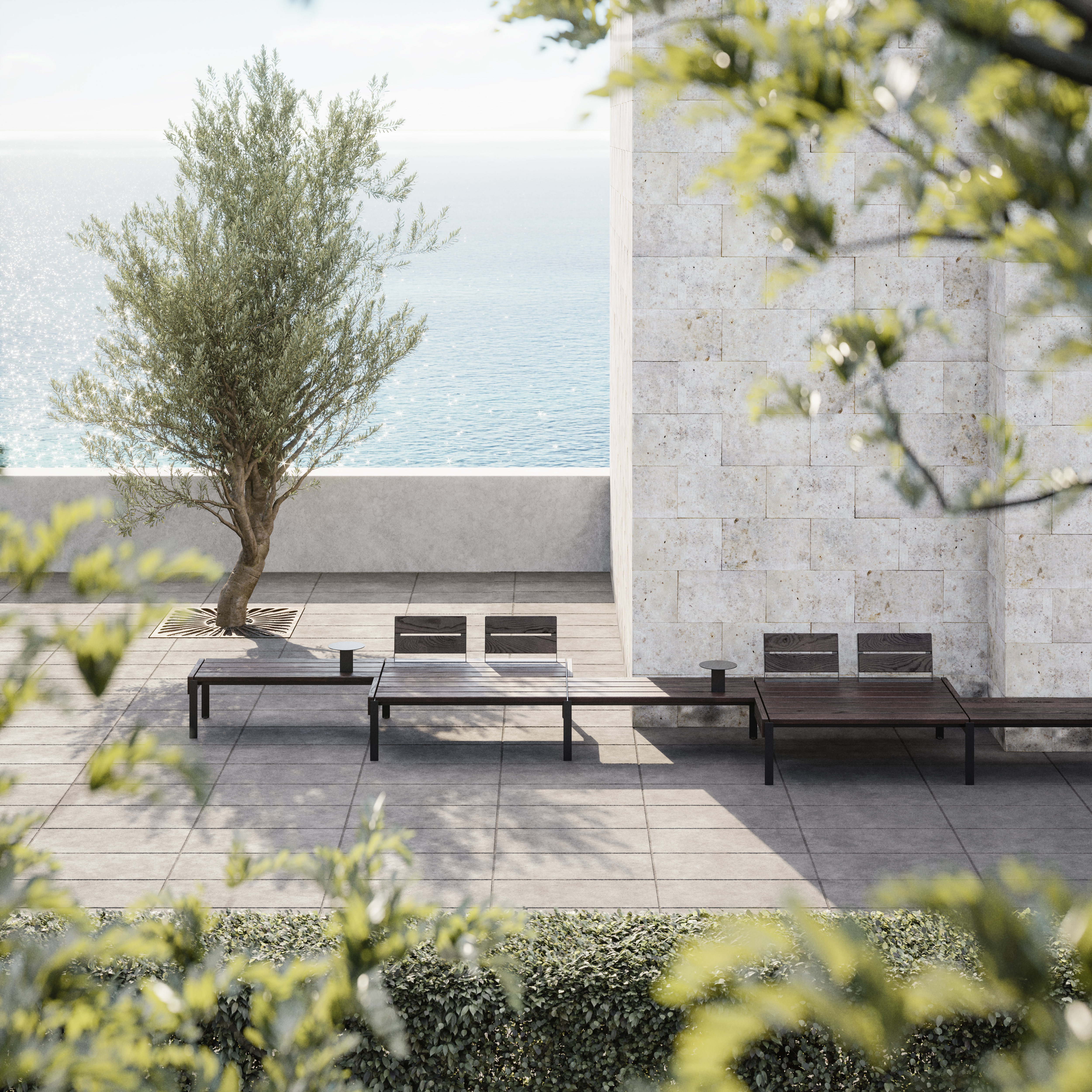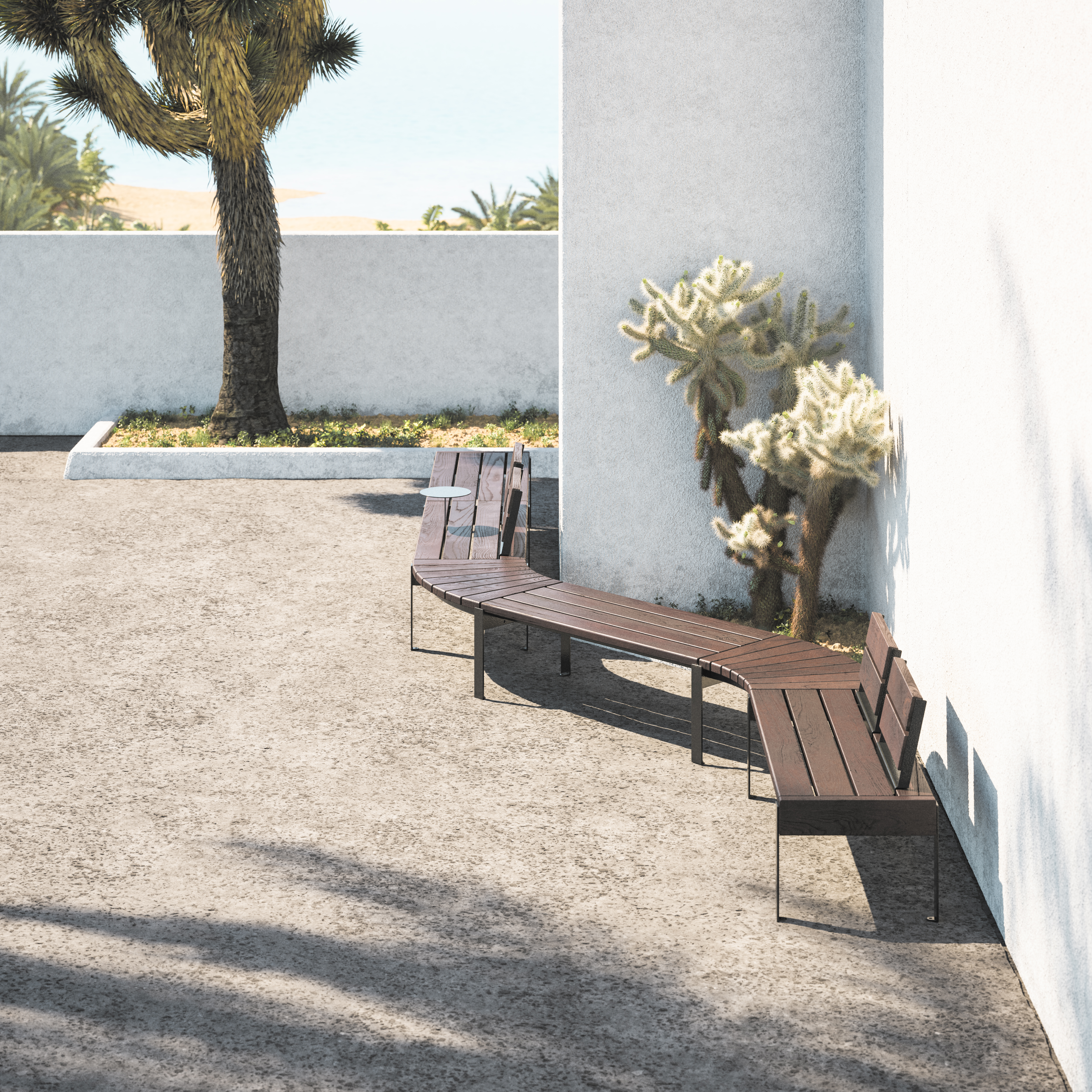 Diese Ausführung erweitert das Banksystem um eine komfortable Liegefläche. Die leicht geneigte Form ermöglicht entspanntes Zurücklehnen oder sogar vollständiges Liegen und lädt zum Verweilen ein.