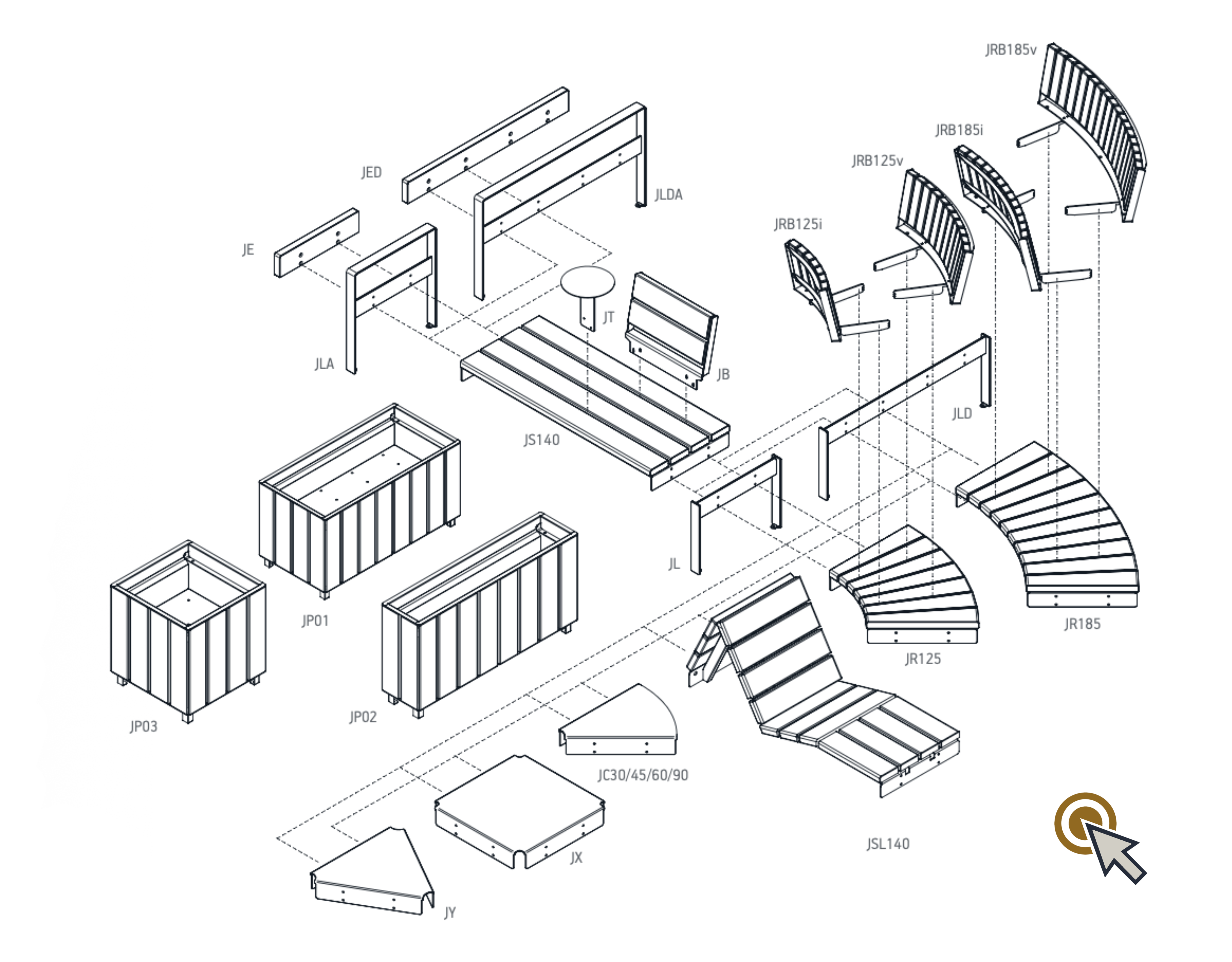 Ob individuell zusammengestellt oder als eines unserer durchdachten, bewährten Komplettsets gewählt. Mit diesem modularen Parkbanksystem finden Sie garantiert die passende Lösung für jede Umgebung. Die flexiblen Elemente eröffnen nahezu unbegrenzte Gestaltungsmöglichkeiten und erlauben sowohl klassische Sitzreihen als auch geschwungene Formen oder großzügige Aufenthaltsflächen.